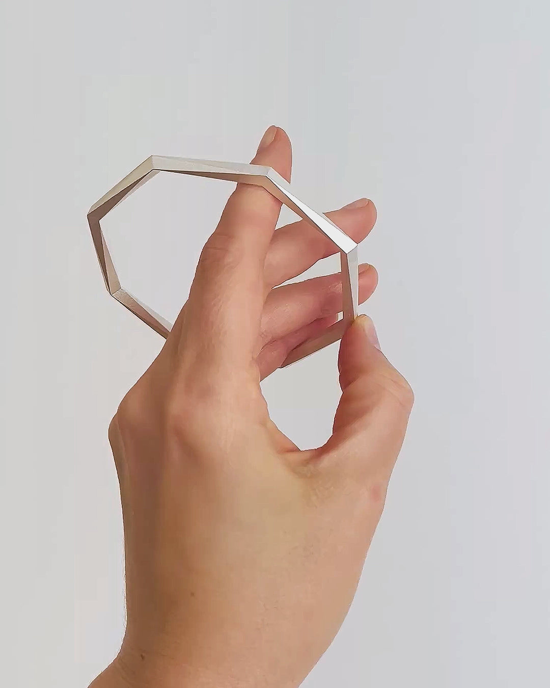 Eleganter Armreif aus Silber mit 64 Facetten von Fine Principles — minimalistisch, geometrisch und fair produziert in Pforzheim.
